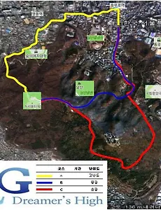 한계를 극복하는 사람들의 조직. 한극인 프로젝트. 그 첫 번째 프로젝트 시행에 들어갑니다. 그 이름하여, '산을 달려서 정복하며, 계속해서 기록을 단축하는 프로젝트' 본 제안에 대해 현재까지 참가자가 없으므로(cafe.daum.net/beyondlimit), 홀로 먼저 진행합니다. 1. 8월 5일, 7일, 9일에 각각 A, B, C 세 개 코스에 대하여 출발(집 앞 몸풀이 후) -> 정상(마루 평상) 주력 시간을 측정한다. 2. 최종 목표 주력 시간을 정한다(국가 대표 수준). 3. 목표를 달성하기 위한 훈련 계획을 수립하고, 정확한 시간 계획 아래 목표에 도전한다. 4. 목표 달성 이후, 관악산, 북한산, 속리산, 한라산, 백두산, 히말라야(ㅡ.ㅡ;;)를 같은 방식으로 정복한다. 8월 5일 도전 첫 날..